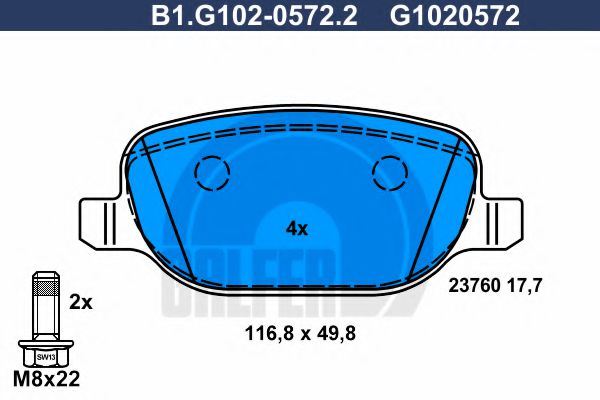 Запросить цену Комплект тормозных колодок, дисковый тормоз Высота [мм] : 49,8 Дополнительный артикул / Дополнительная информация : с аксессуарами проверочное значение : ECE R90 APPROVED Толщина [мм] : 17,5 Тормозная система : Lucas Ширина (мм) : 116,6 Показать больше свойств