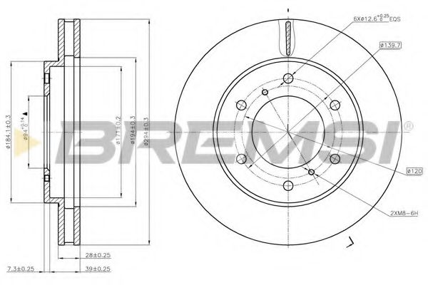 | | Тормозной диск Высота [мм] : 46,4 Диаметр [мм] : 294 Диаметр фаски 2 [мм] : 139,7 Диаметр центрирования [мм] : 94 Количество отверстий : 6 Минимальная толщина [мм] : 26,4 Размер резьбы : 12,6 Сторона установки : Передний мост Тип тормозного диска : вентилируемый Толщина тормозного диска (мм) : 28 Показать больше свойств | |