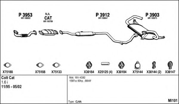 Купить Глушитель в сборе на MITSUBISHI COLT Mk V (CJ_, CP_) 1600 GLX (CJ4A) 1996 - 2000 Минск