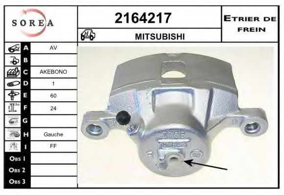 Тормозной суппорт Вес [кг] : 3,52 Диаметр 1/диаметр 2 [мм] : 60,0 для тормозного диска толщиной [мм] : 24 Тормозная система : AKEBONO Показать больше свойств