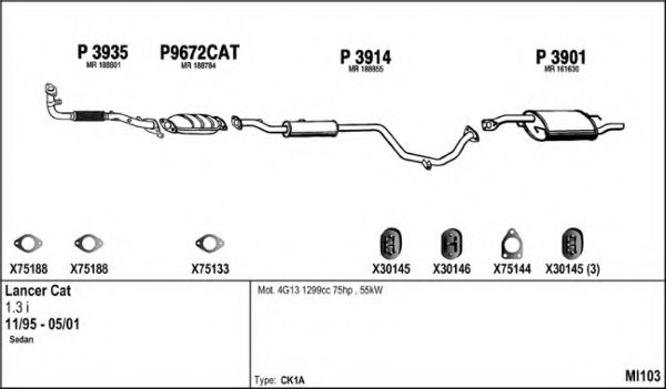 Купить Глушитель в сборе на MITSUBISHI LANCER Mk VI (CJ-CP_) 1.3 12V (CK1A) 1995 - 2003 Минск