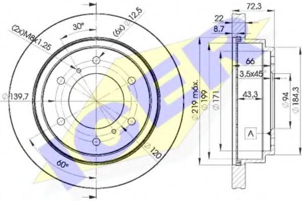 | | Тормозной диск Внутренний диаметр : 199 Высота [мм] : 72,3 Диаметр [мм] : 300 Диаметр отверстия [мм] : 12,6 Диаметр фаски 2 [мм] : 139,7 Диаметр центрирования [мм] : 94 Количество отверстий : 6 Минимальная толщина [мм] : 20,4 Сторона установки : Задний мост Тип тормозного диска : вентилируемый Толщина тормозного диска (мм) : 22 Показать больше свойств | |