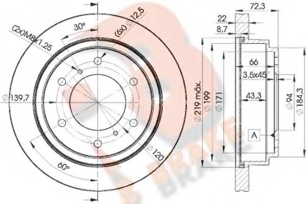 | | Тормозной диск Высота [мм] : 72,3 Диаметр [мм] : 300 Диаметр точек крепления [мм] : 139,7 Диаметр фаски 2 [мм] : 12,6 Диаметр центрирования [мм] : 94 Количество отверстий 1 : 6 Количество отверстий 2 : 2 Сторона установки : Задний мост Тип тормозного диска : вентилируемый Толщина тормозного диска (мм) : 22 Показать больше свойств | |