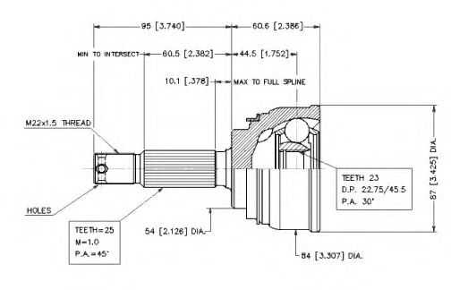Сторона установки : со стороны колеса Тип соединения / сочленения : Шарнир равных угловых скоростей
