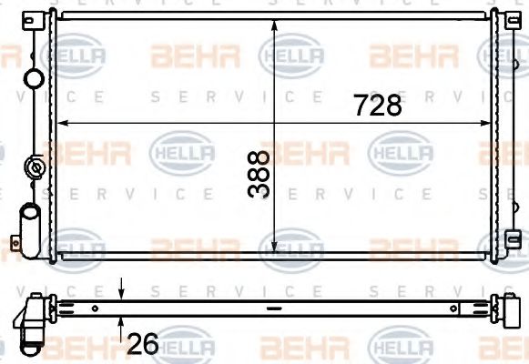 8MK 376 700-651 BEHR HELLA SERVICE Радиатор, охлаждение двигателя