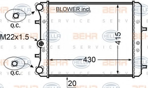 8MK 376 704-601 BEHR HELLA SERVICE Радиатор, охлаждение двигателя