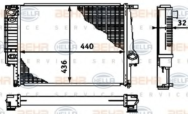 8MK 376 713-181 BEHR HELLA SERVICE Радиатор, охлаждение двигателя