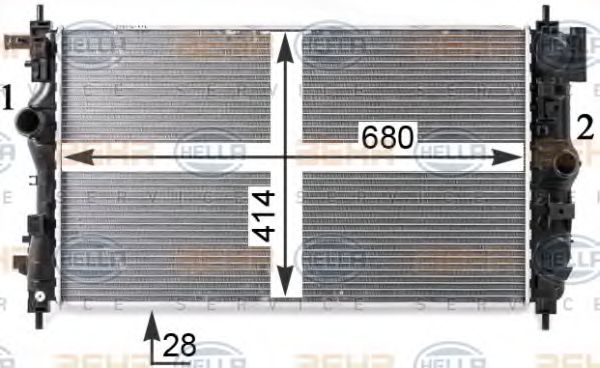 8MK 376 910-231 BEHR HELLA SERVICE Радиатор, охлаждение двигателя